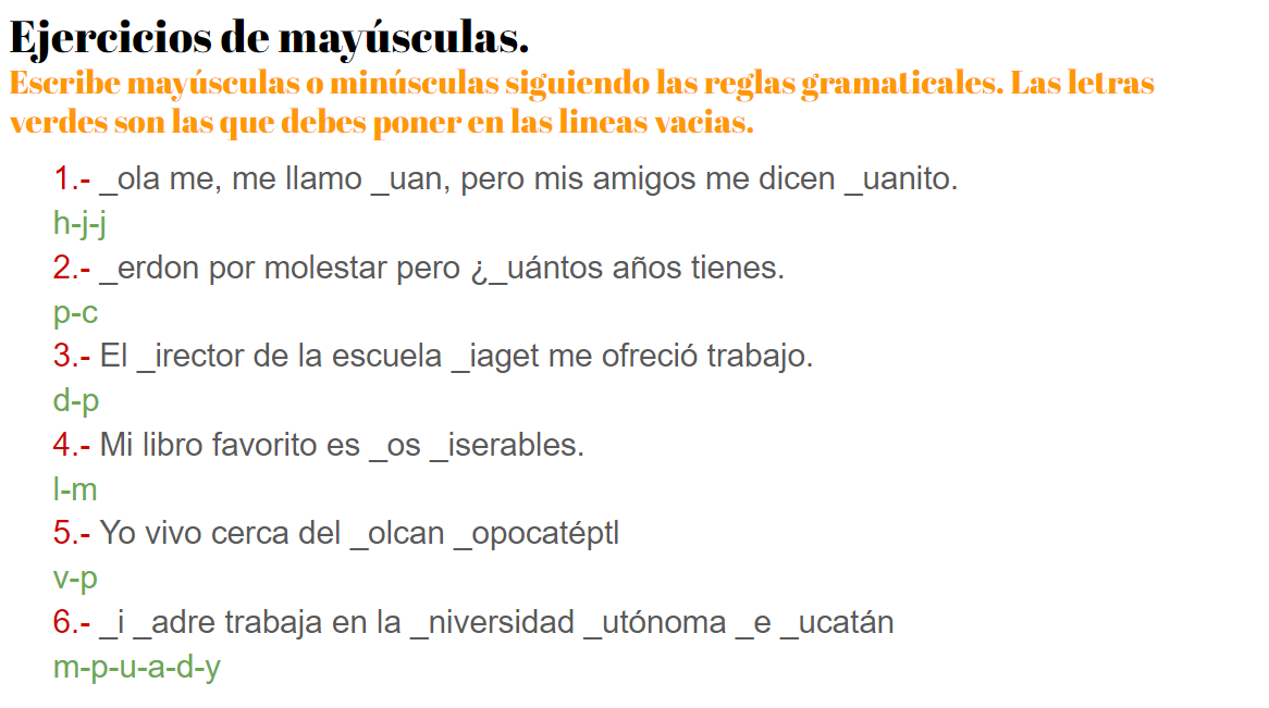 En esta parte de la página web hemos agregado actividades sobre los diferentes temas que hemos mostrado y explicado en esta increíble página, estos ejercicios están diseñados para que uno imprima y agá a mano para practicar las habilidades y conocimientos que ha conseguido leyendo lo que hay aquí, seas maestro, alumno o ninguno de los dos esperemos que estas actividades extras se les sean útiles y divertidas.